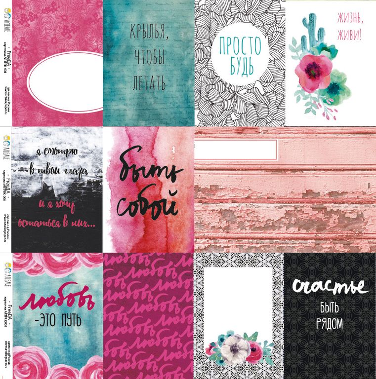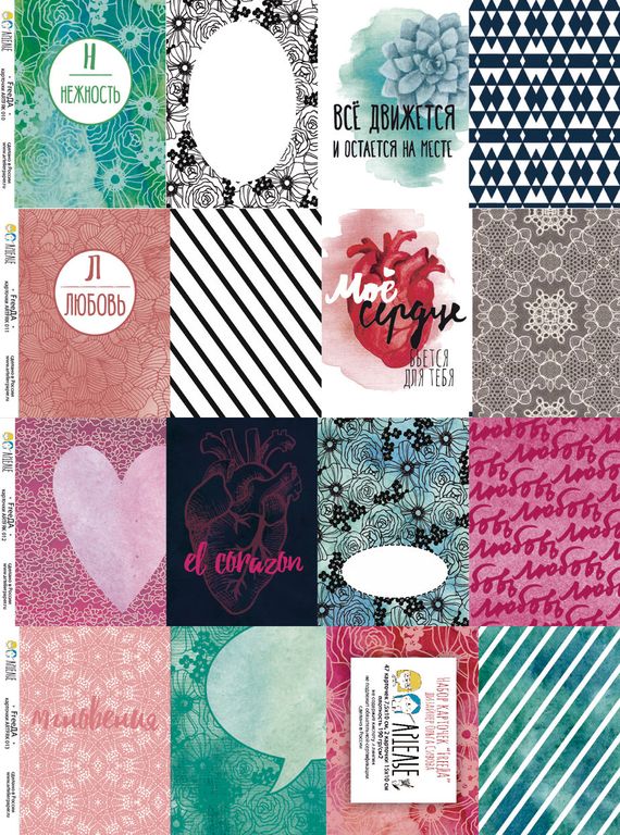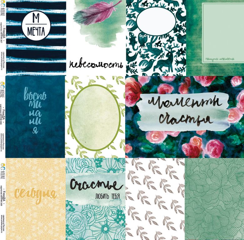 С обратной стороны карточек напечатаны дизайны, не вошедшие в основную коллекцию. Они могут стать основой для целого миниальбома!