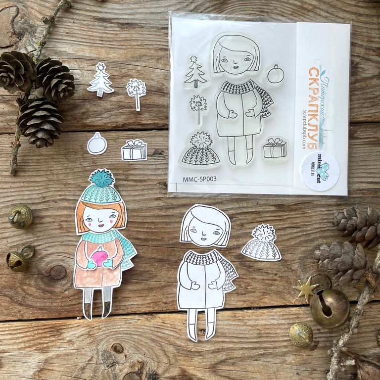 Набор штампов для скрапбукинга "Девочка-зима"
